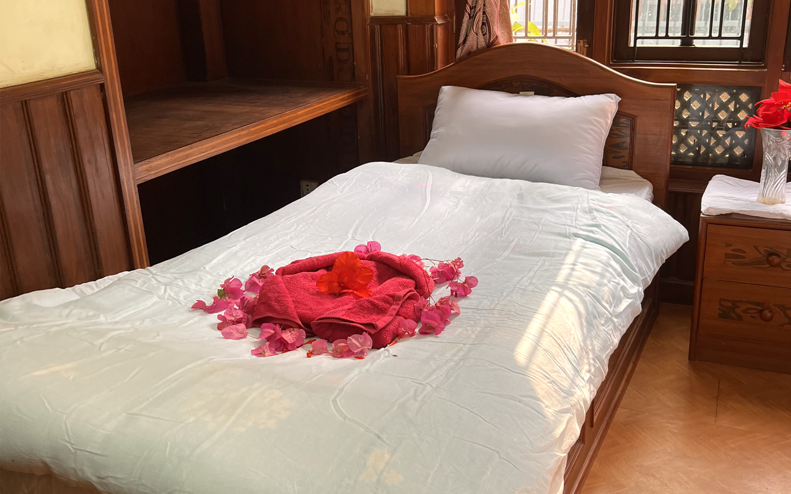 Indulge in spacious luxury with our homestay's large bathroom, providing ample room for your comfort and relaxation.